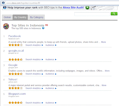 website dengan rating tertinggi. Facebook misalnya, di Indonesia situs